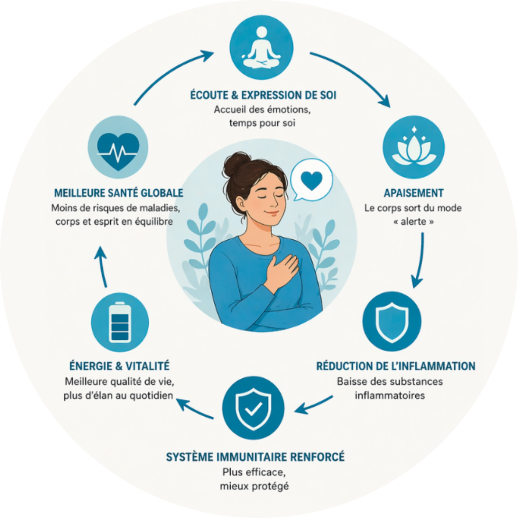 Prendre soin de son esprit, c’est donc envoyer un signal d’apaisement concret à son corps, lui permettant de baisser la garde, de se réguler et de se réparer.